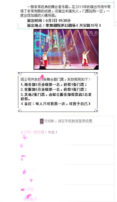 有6張音樂情景劇的門票哦~只有6張?jiān)趺崔k呢?當(dāng)然是投票選舉嘍!