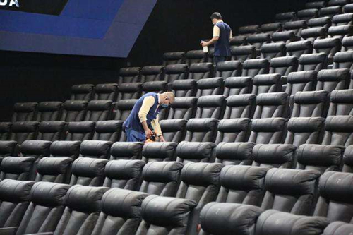 對于衛(wèi)生消毒,該版《防控指南》根據電影院的不同區(qū)域制定了相對細節(jié)的規(guī)定。其中,對于大堂、影廳、衛(wèi)生間、走廊、疏散通道等公共區(qū)域,《防控指南》指出,需每日不少于2次噴霧消毒;售取票機、商品售貨區(qū)、自動販賣機、公共區(qū)域座椅、入口閘機、衛(wèi)生間等重點區(qū)域,則需要每日不少于5次擦拭消毒;而在影廳座椅扶手、3D眼鏡等觀眾直接接觸物品,電影院需每場消毒一次;此外,電影院需要做好入場檢測,登記觀眾信息,檢查體溫,并在電影院入口配備手消毒劑。