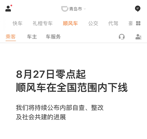 8月28日 20:20左右,滴滴出行創(chuàng)始人程維,總裁柳青終于對外發(fā)表了道歉聲明,滴滴不再以規(guī)模和增長作為公司發(fā)展的衡量尺度,順風(fēng)車業(yè)務(wù)模式重新評估,在安全保護(hù)措施沒有獲得用戶認(rèn)可之前,無限期下線。