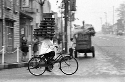 20世紀(jì)中葉日本騎著自行車的外送小哥
