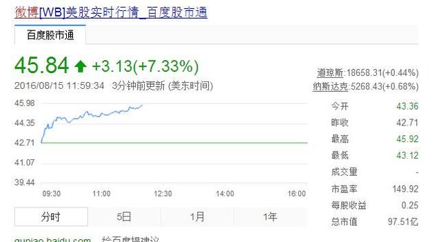 而經(jīng)過(guò)這次事件,相信新浪微博會(huì)統(tǒng)計(jì)下上漲多少。 8月15日新浪微博股價(jià),又一個(gè)歷史新高!又TM賺了!