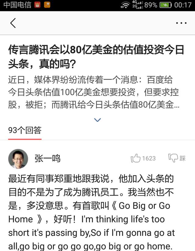 如果說(shuō)今日頭條有望突破BAT現(xiàn)在的三家互聯(lián)網(wǎng)大托拉斯的格局,小波也是信了。 怪不得,前段時(shí)間吵得沸沸揚(yáng)揚(yáng)的騰訊投資今日頭條,張一鳴回復(fù)說(shuō):“最近有同事鄭重地跟我說(shuō),他加入頭條的目的不是為了成為騰訊的員工。我當(dāng)然也不是,多沒(méi)意思。”還特別幽默的推薦了一首歌《Go Big or Go home》。其中的意思不言而喻,當(dāng)你手里有個(gè)會(huì)下金蛋的雞,別人拿錢來(lái)買,你會(huì)賣嗎?當(dāng)然不會(huì),尤其是當(dāng)這只下金蛋的雞沒(méi)長(zhǎng)大的時(shí)候,更不會(huì)!