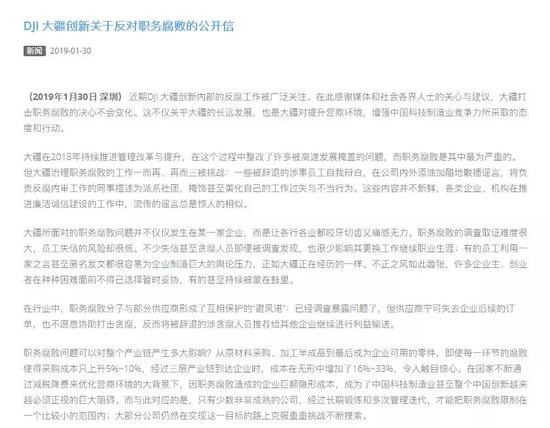 不僅僅是對公司內(nèi)部,職務腐敗還會對整個產(chǎn)業(yè)鏈產(chǎn)生多大影響?大疆在一封公開信中表示,從原材料采購、加工半成品到最后成為企業(yè)可用的零件,即使每一環(huán)節(jié)的腐敗使得采購成本只上升5%-10%,經(jīng)過三層產(chǎn)業(yè)鏈到達企業(yè)時,成本在無形中增加了16%-33%,令人觸目驚心。