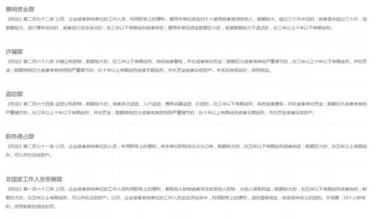 除了被公司辭退,在法律層面腐敗犯罪究竟會面對怎樣的刑罰?北京師范大學中國刑法研究所副所長彭新林此前表示,在2014年到2017年,民營企業(yè)腐敗犯罪中,共包括15個罪名,其中最主要的就是單位行賄罪、職務侵占罪、挪用資金罪、非國家工作人員受賄罪和行賄罪。